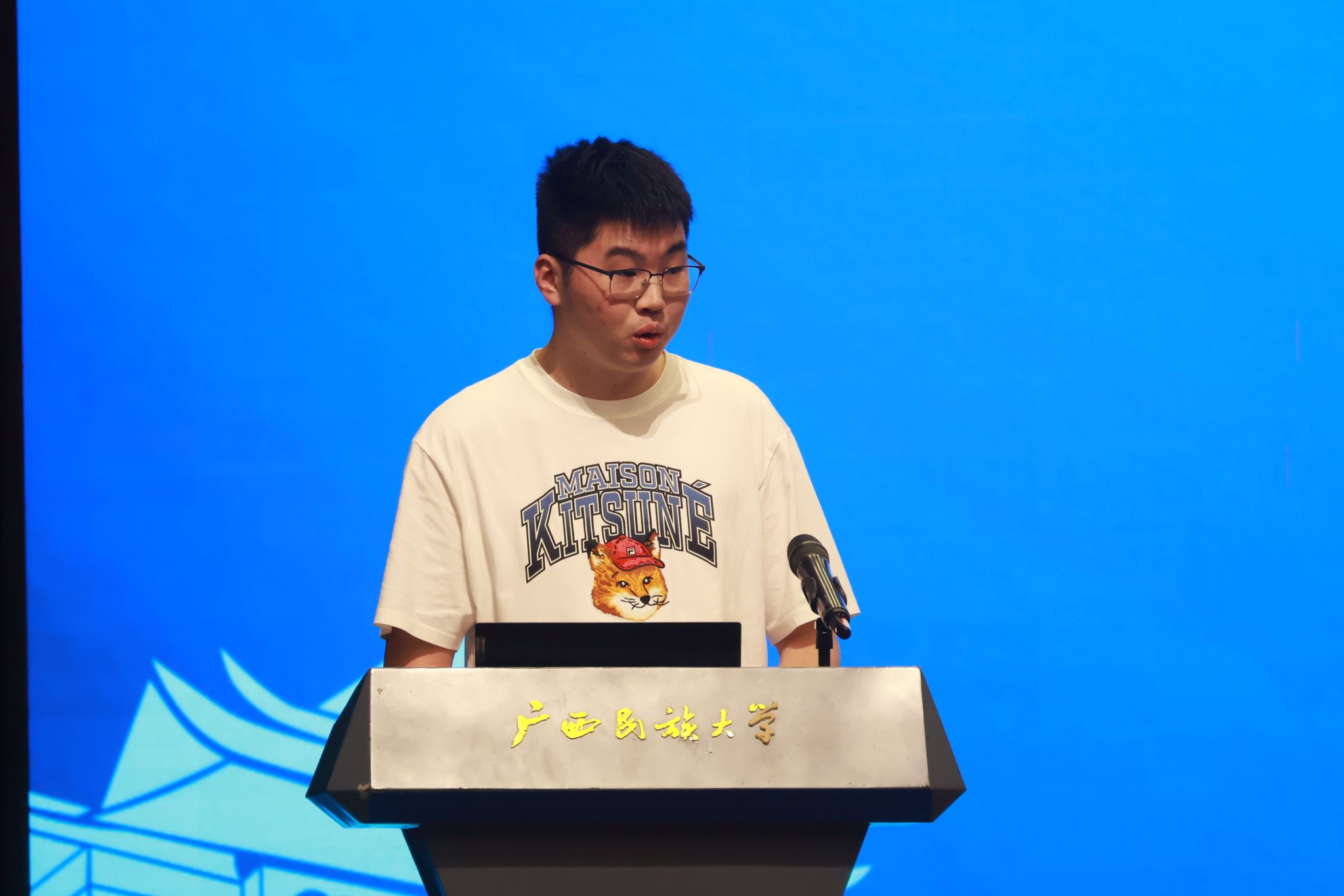 老生代表2022级人工智能专业1班黄浩杰同学从自己的成长经验出发,建议2025级学弟学妹们快速适应大学节奏,尽早制定清晰的学习规划,课堂上紧跟老师思路夯实理论基础,课后主动参与学院科创项目和学科竞赛,多走进实验室,在实践中积累经验,在互助协作中提升能力。
