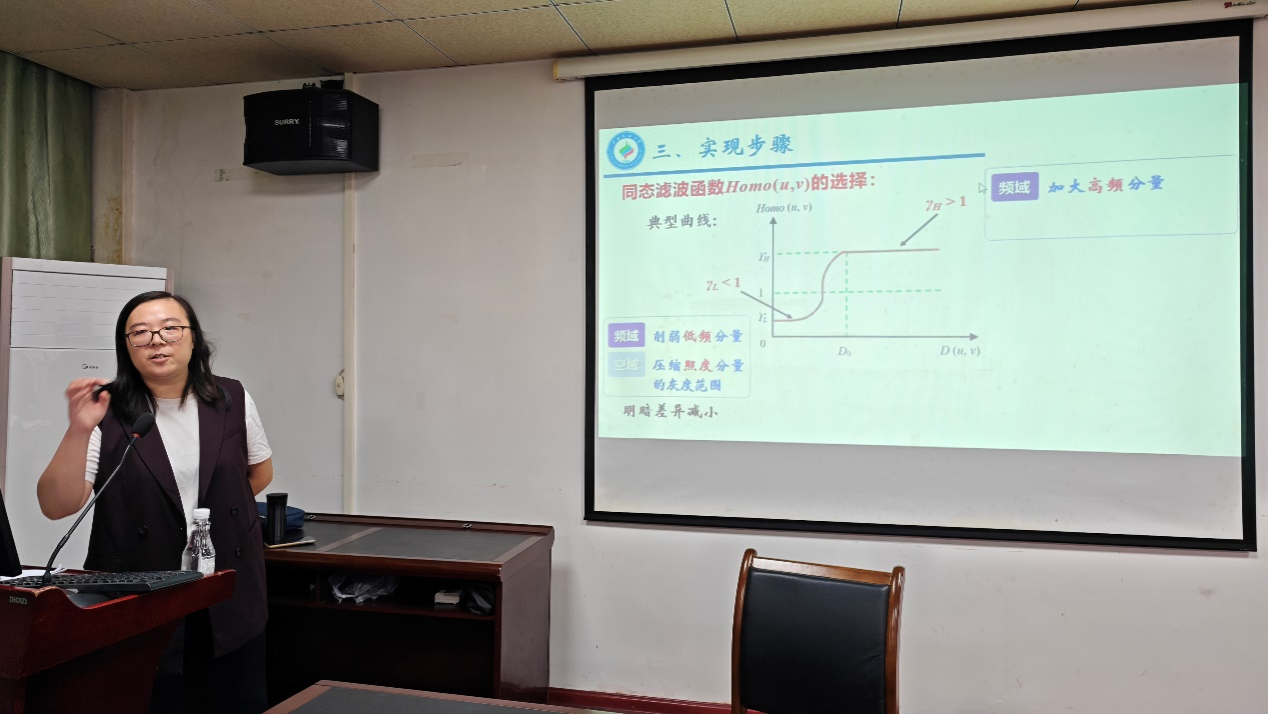 活动现场,赵地副教授以“基于照度-反射模型的图像增强——同态滤波”为主题进行示范课讲授。授课过程中,赵老师教姿教态从容自然,课程内容围绕核心知识点层层递进,逻辑框架清晰严谨,教学环节衔接紧凑流畅,将抽象的算法原理转化为直观易懂的讲解,其专业的教学表现获得在场听课人员的一致认可。