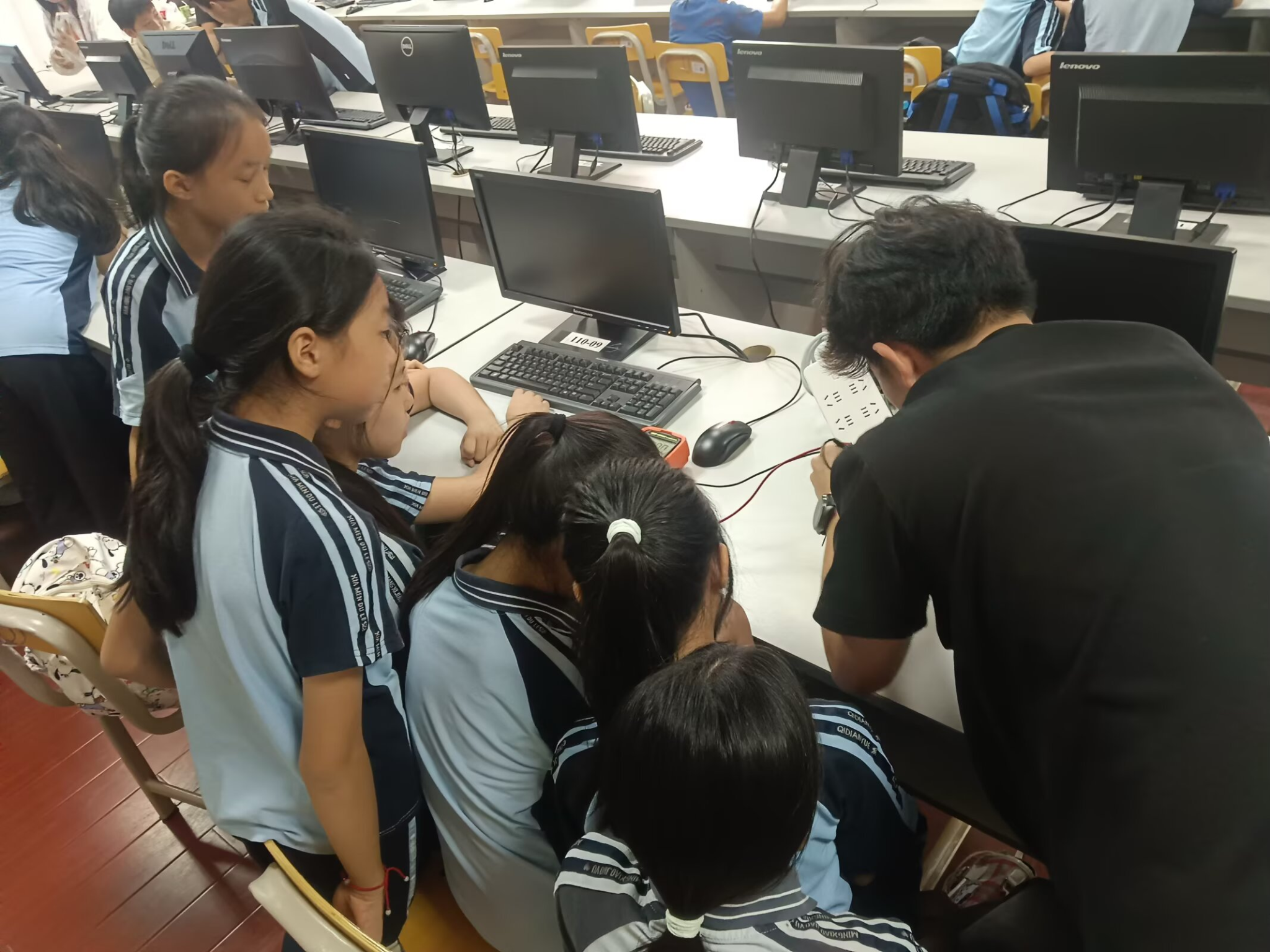 在科技社成员的耐心指导下,孩子们分组挑战“简易机器人操控任务”。从初始的生疏——对着遥控器手忙脚乱,到熟练掌握“前进、后退、旋转”指令;从调试参数时的眉头紧锁,到看到机器人按指令完成动作时的欢呼雀跃……
