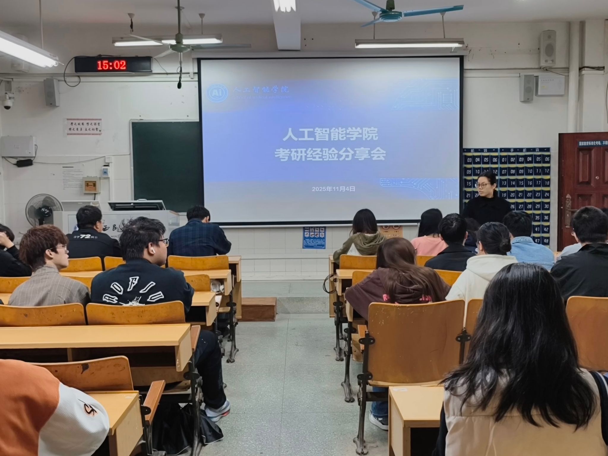 11月4日下午,我院在校友楼201教室成功举办考研经验分享会。活动邀请胡坚强、李姝桦、李军毅、明帅彪四位优秀研究生代表亲临现场,结合各自考研历程,为2022至2025级本科生代表带来一场内容丰富、贴近实战的经验交流。