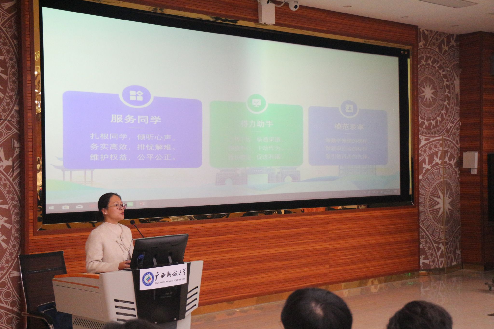 11月21日晚,为加强团学干部队伍建设,全面提升干部综合素养,我院于学友楼105室报告厅成功举办“锻造先锋力量,谱写青春华章——学生干部的责任、担当与大局意识”专题培训。本次培训由学院党委副书记潘彦燕老师主讲,学院团委、学生会全体学生干部参与。