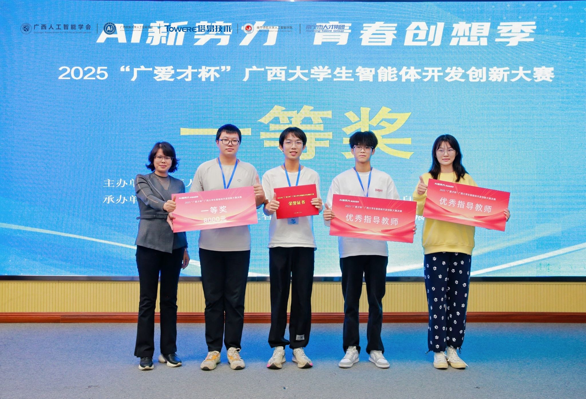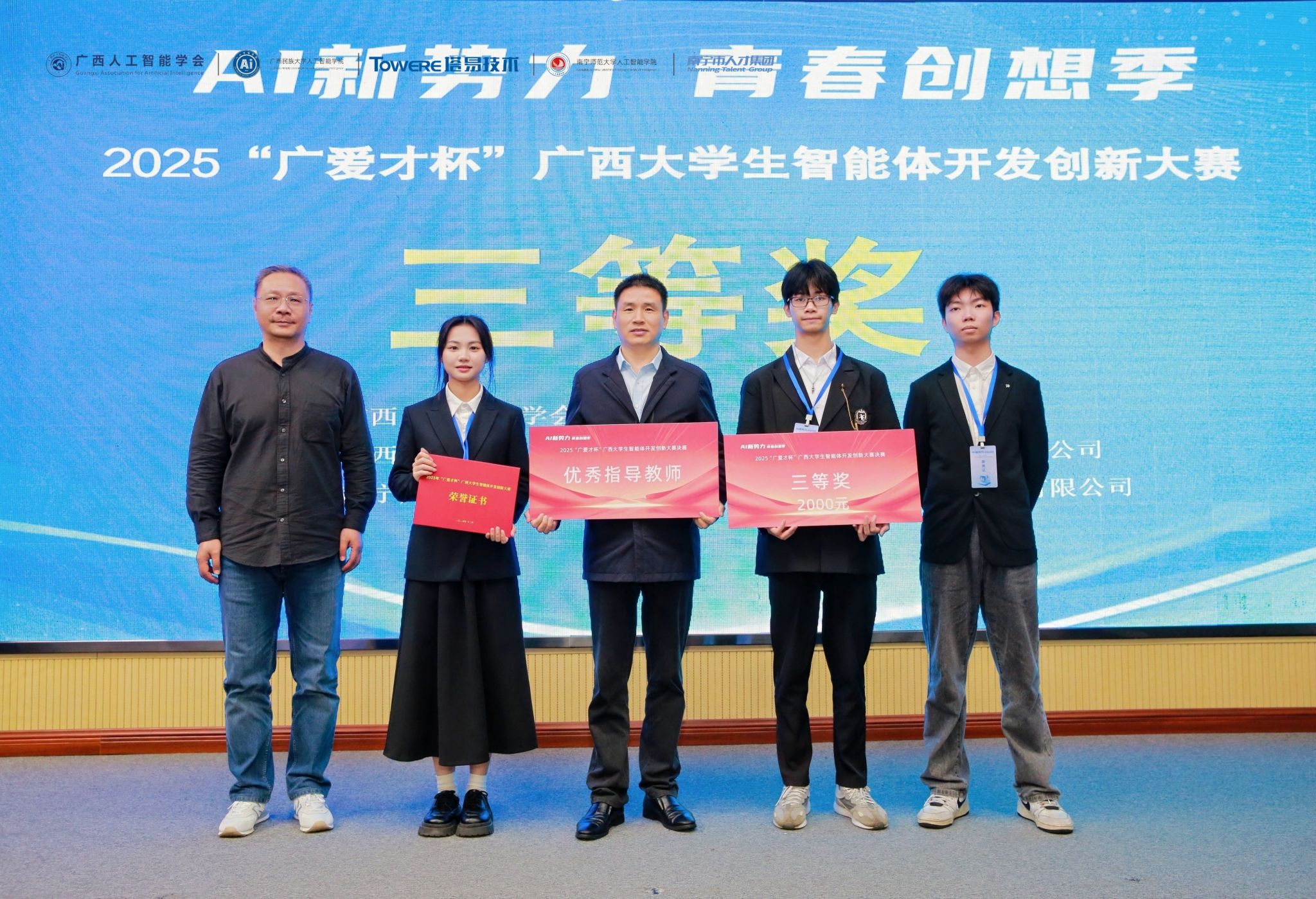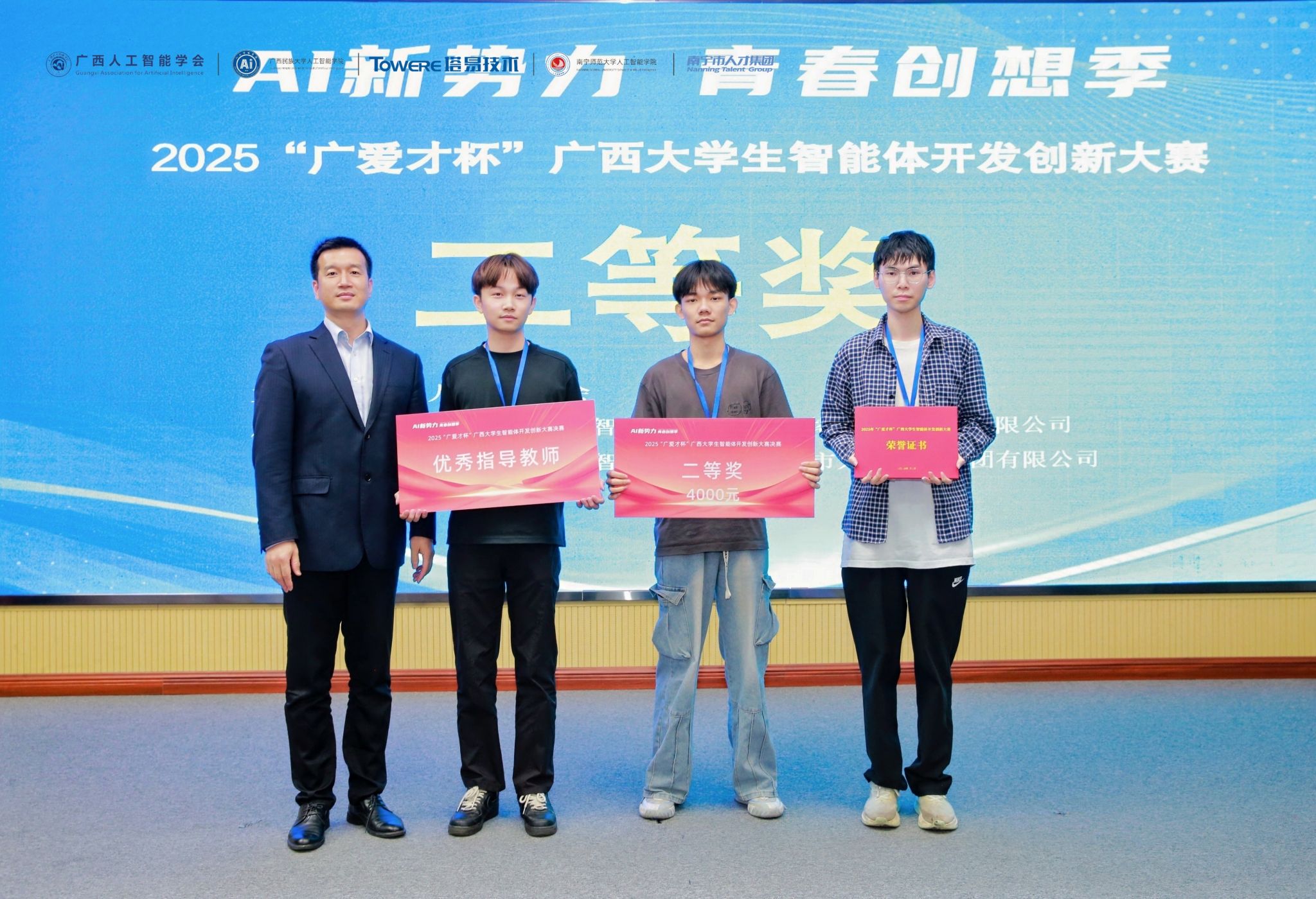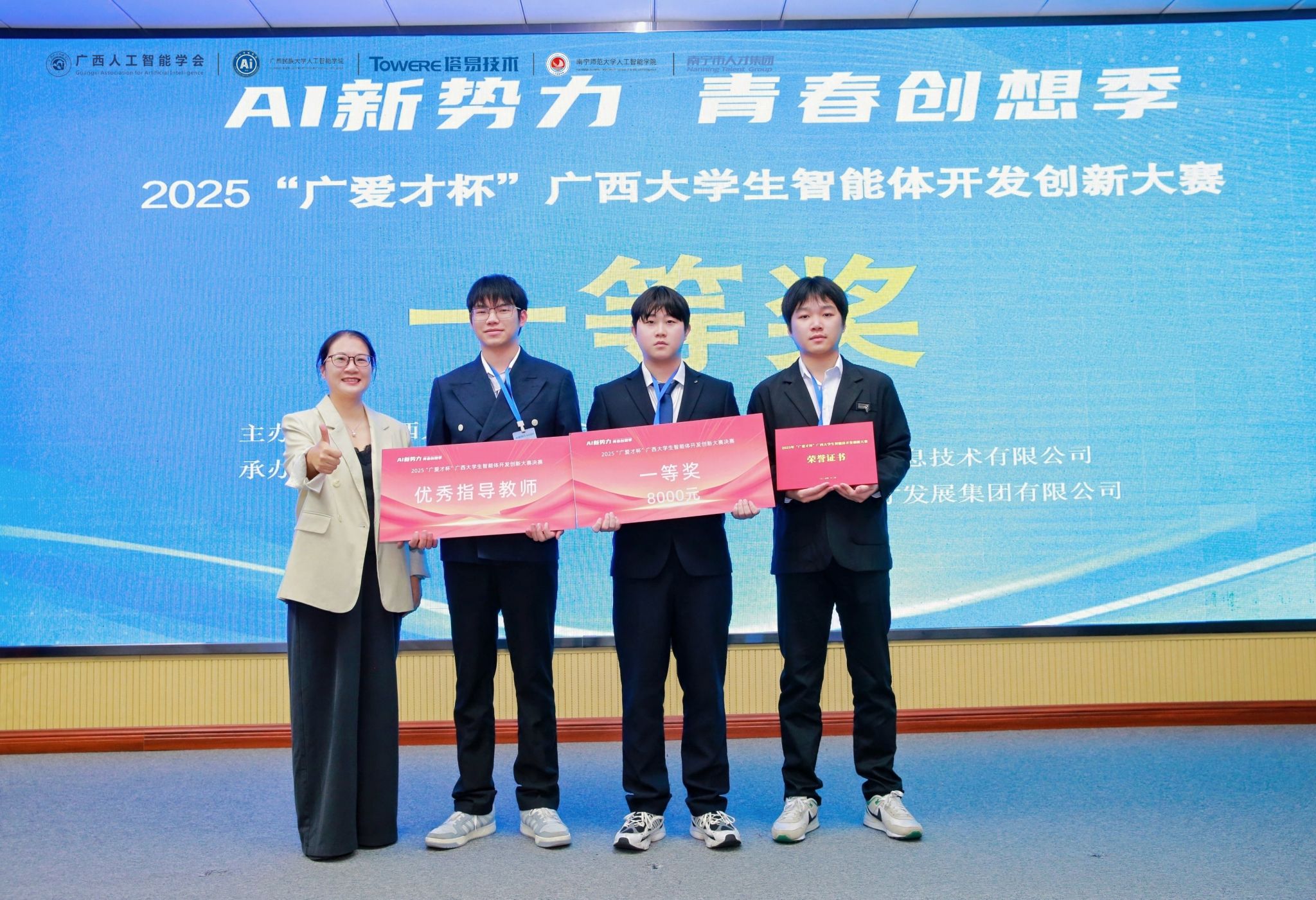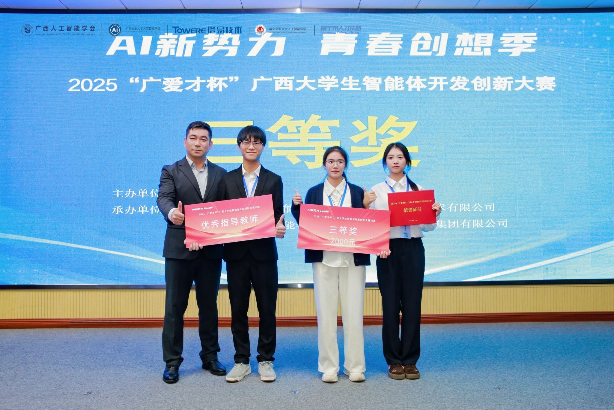 我院参赛队伍于本次“广爱才杯”大赛中展现出的优异表现,不仅是对我院人工智能相关专业教学成效的充分认可,亦彰显了我院学子勇于创新、勤于实践的青春风貌。展望未来,学院将以此次大赛为契机,强化实践教学环节,搭建更多创新实践平台,助力学子在人工智能领域持续深耕。(初审:雷金燕 复审:潘彦燕 终审:刘志雄)