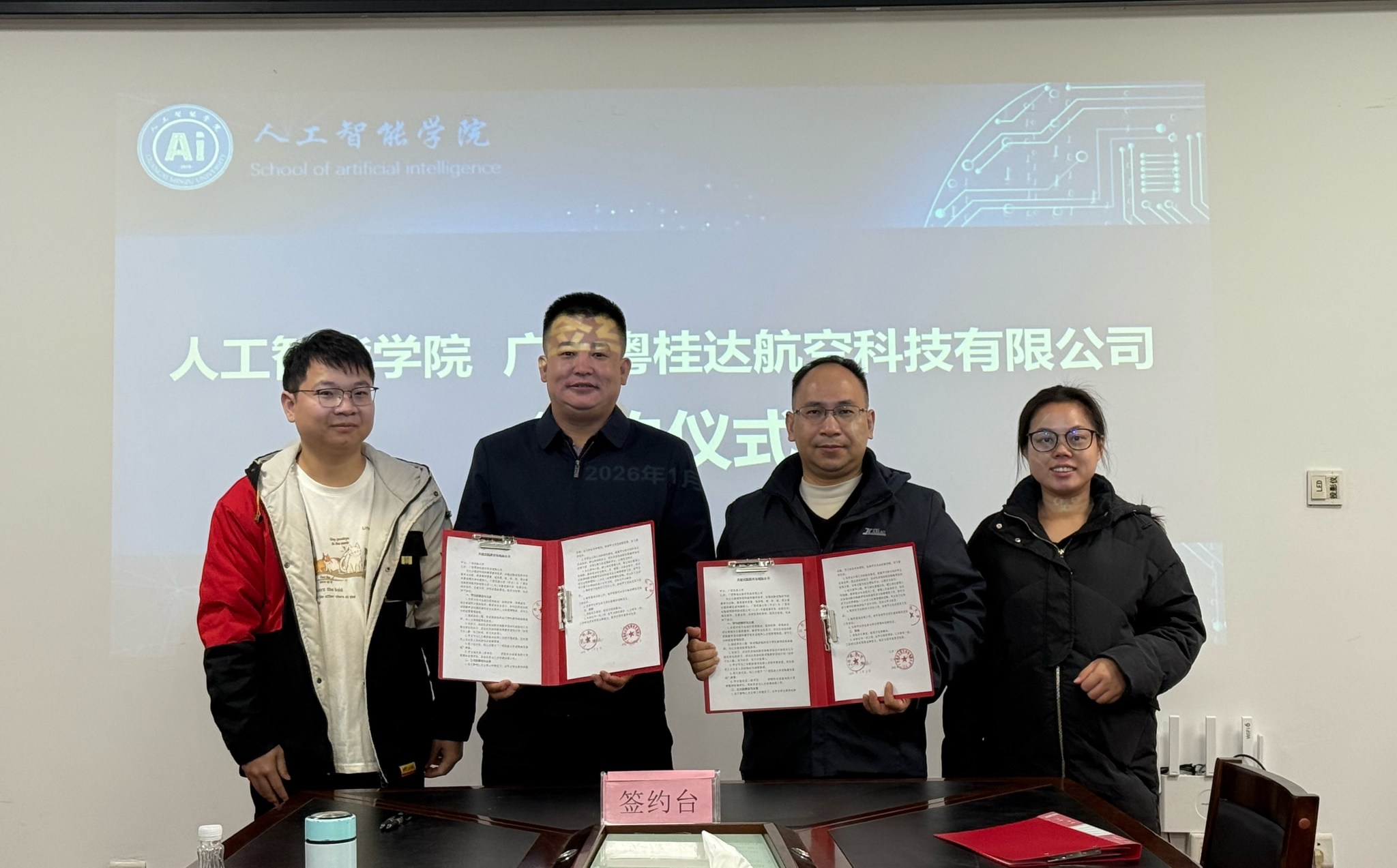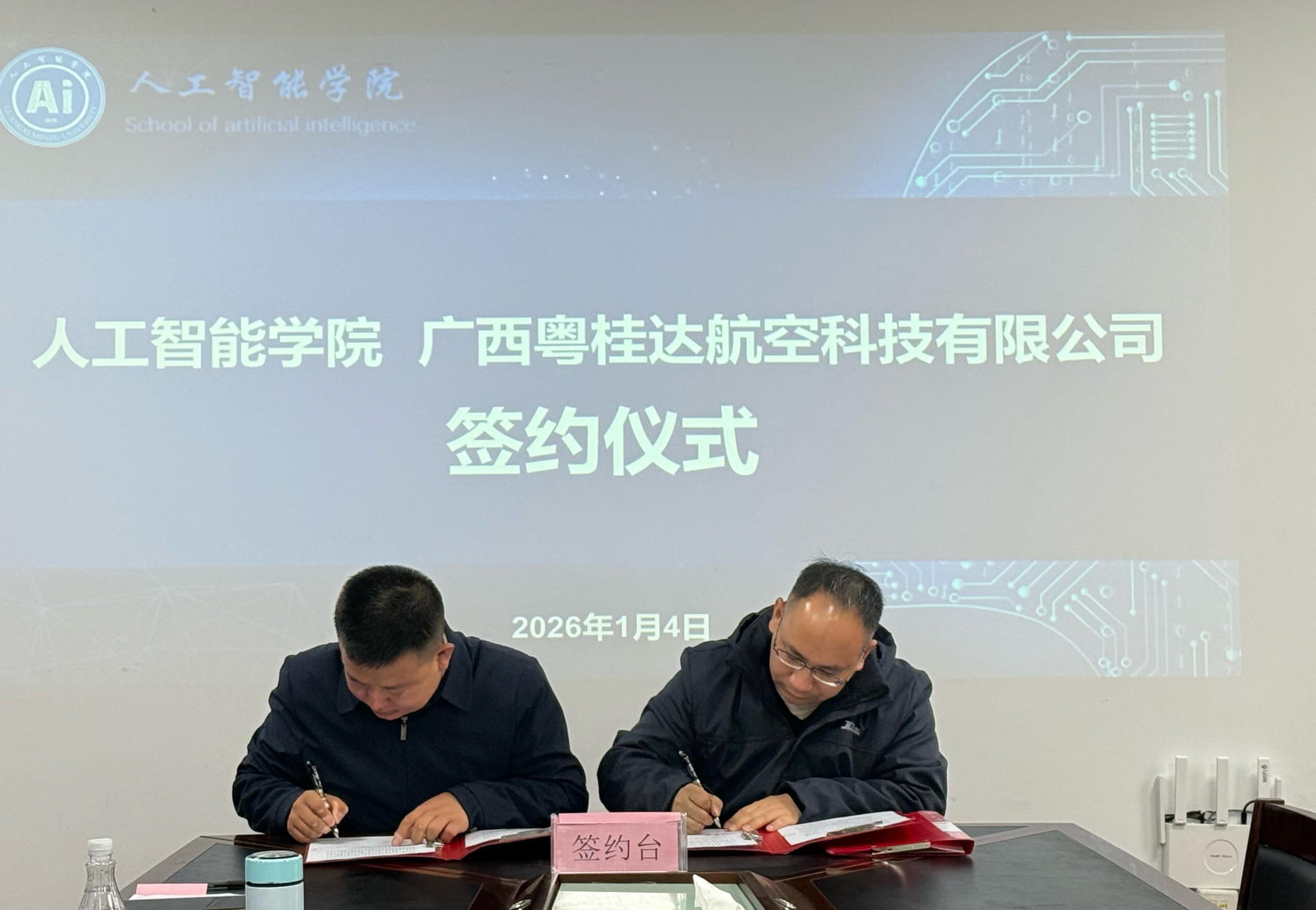 广西粤桂达航空科技有限公司负责人刘克民详细介绍了公司发展概况与核心业务范围。学院党委书记刘志雄就学院的发展情况进行介绍,并表达与企业在人才联合培养、科研项目攻关、赛事协同培育等方面开展合作,为企业发展输送优质人才,为区域航空科技产业高质量发展贡献力量。谢和坤老师针对AI研究的一些领域、李清老师针对实习领域分别与公司负责人进行了探讨。随后,双方就共建校外实践教育基地进行了签约,助力推动人才培养与产业发展深度融合。